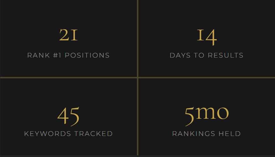 A chiropractic practice opened its doors with no online presence. Within two weeks of working with VORA, they held 21 #1 keyword positions; including "chiropractor near me," one of the most competitive searches in their market.